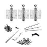 Product SKU K51MP-B3 Hinge Type Between square posts Hinge Material Stainless Steel Door Weight From 40lbs to 260lbs (75kg) Approx Door Size 1150mm W x 2200mm H (4ft x 7ft) Door Thickness 1 ¾” (40-50 mm) Self-closing o Fluid Motion o Hold-open x Fixing Method Screw-On, only spot weld AFTER speed adjustment Color/Finish Satin Brushed,Black Combination/Quantity DS.HA.SA,3 Pack -