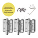 - Both machined #12-24 UNC ½”L and wooden tapping #12 x 1 ¼” screws included -- eight (8) of each type per hinge. Pack contains five (5) spares as well.